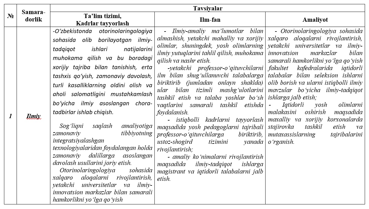6. Respublikada otorinolaringologiya bo‘yicha ilmiy izlanishlarni rag‘batlantirish